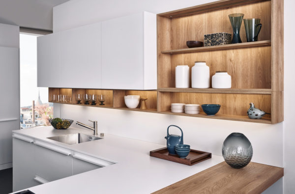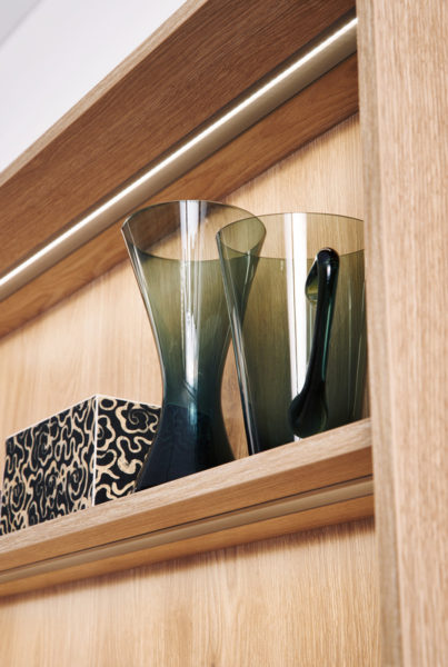 Des espaces et des systèmes de rangement sophistiqués se cachent derrière les façades à l’aspect extérieur lisse et calme. LEICHT a conçu un nouveau rangement spécialement pour les caisses de boissons. Il permet de ranger rapidement les caisses encombrantes à leur place – accéder aux bouteilles dans les différentes caisses est un jeu d’enfant. Ce système prévoit également une grande variabilité – non seulement pour une caisse, mais pour plusieurs, même si elles sont de tailles différentes.